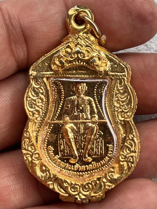 เหรียญหลวงพ่อศรีสมณโกฎบพิตร์ - สมเด็จพระเจ้าตากสินมหาราช ทรงผนวช วัดสมณโกฏฐาราม จ.อยุธยา ทองฝาบาตร