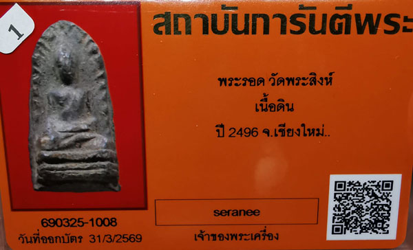 พระรอด วัดพระสิงห์ เนื้อดิน ปี2496 จ.เชียงใหม่ + บัตรG-pra พระสภาพสวยเดิม สภาพตามรูปทุกประการค่ะ