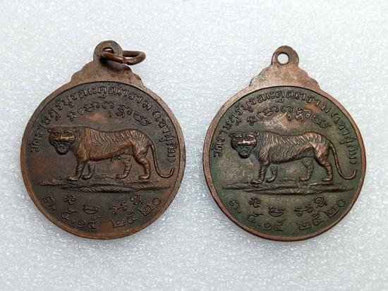เหรียญเสือยืน พิมพ์ใหญ่ หลวงปู่สมชาย วัดเขาสุกิม จันทบุรี ปี2520 //2เหรียญ |