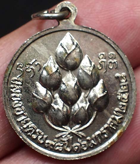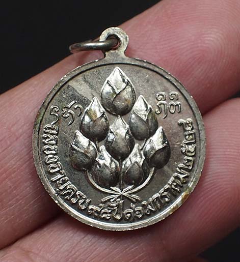 เหรียญหลวงปู่แหวน วัดดอยแม่ปั๋ง ฉลองอายุครบ 98 ปี หลังบัว 8 ดอก เนื้อกะไหล่เงิน ปี 2528 จ.เชียงใหม่