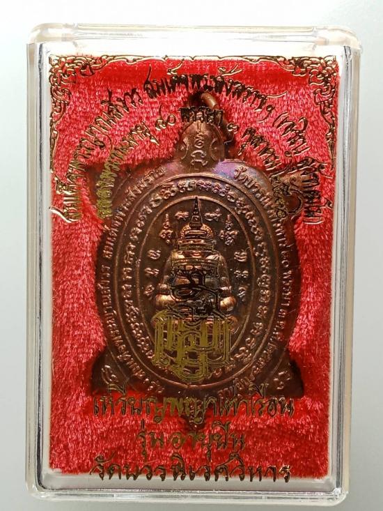 เคาะเดียว พร้อมกล่องเดิม พญาเต่าเรือนรุ่นอายุยืน เนื้อทองแดงผสมชนวนพระกริ่งปวเรศ ๒๕๓๐ และพระกริ่งบวรรังสี ๒๕๒๘ วัดบวรนิเวศวิหาร ๓ ตุลาคม ๒๕๓๖