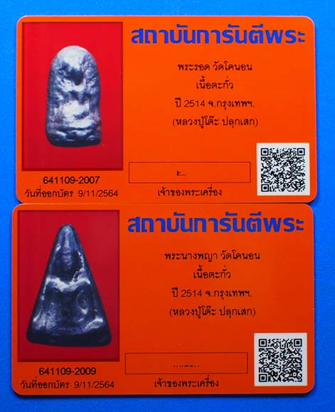 พระรอด วัดโคนอน + พระนางพญา วัดโคนอน เนื้อตะกั่ว ปี 2514 จ.กรุงเทพ (หลวงปู่โต๊ะปลุกเสก) พร้อมกล่องและบัตรรับรองสถาบันการันตีพระ รับประกันตามกฎ G พระ ทุกประการครับ