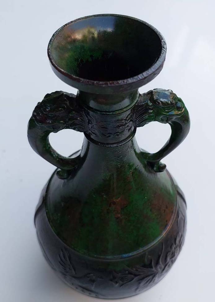 **วัดใจ***แจกันทองสัมฤทธิ์เก่าทรงโบราณ หูมังกร สูง 8.5 นิ้ว ปาก 2.5 นิ้ว