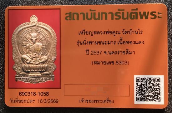 เหรียญ นั่งพานชนะมาร เนื้อทองแดง ปี 2537