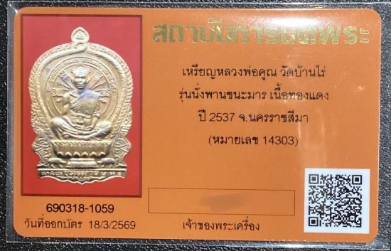 เหรียญ นั่งพานชนะมาร เนื้อทองแดง ปี 2537