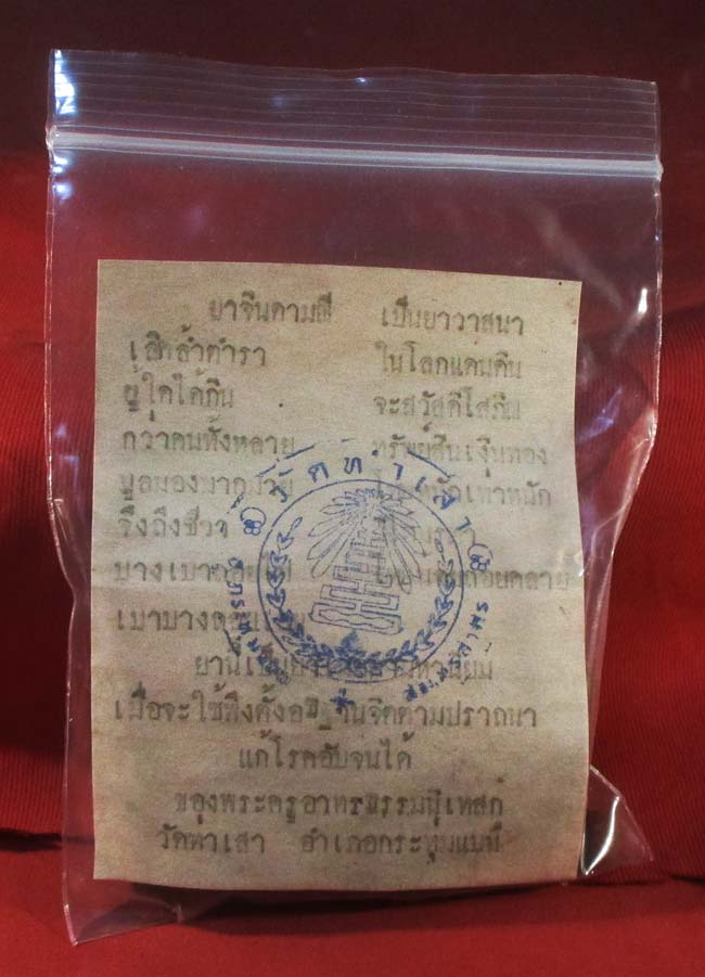 เม็ดยา พระครูอาทรธรรมนิเทสก วัดท่าเสา อ.กระทุ่มแบน จ.สมุทรสาคร ในซองมี 100 เม็ด ครับ (พระบ้าน ครับ) |