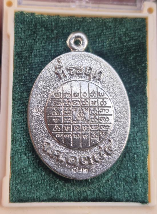 เหรียญหล่อ ครูบาศักดิ์ จ. ลำปาง เนื้ออัลปาก้า ลงยาสีธงชาติที่ระลึก จ.ศ. 1384