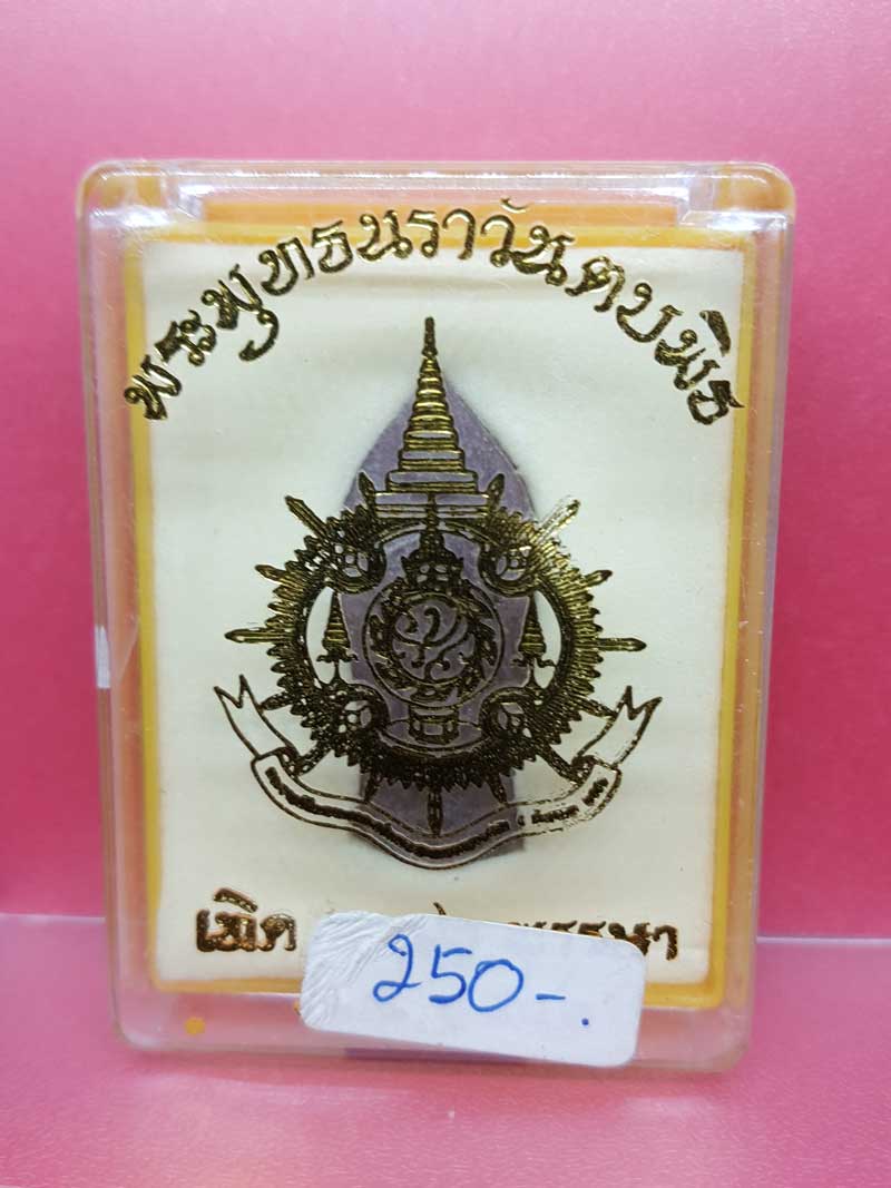 ลักษณะพระพุทธรูปยืนยกพระหัตถ์ทั้งสอง (ปางห้ามสมุทร) เนื้อผงสีน้ำตาล/ขาว ขนาดความสูงประมาณ 3.2 เซนติเมตร ด้านหลังประดิษฐานตราสัญลักษณ์เฉลิมพระชนมายุ 72 พรรษา พ.ศ. 2542 มวลสารประกอบด้วยผงจิตรลดา, เส้นพระเกศา (เส้นพระเจ้า) และจีวรพระราชทานจากรัชกาลที่ 9, มวลสารจากสถานที่ประสูติ/ตรัสรู้/แสดงปฐมเทศนา/ปรินิพพาน และวัดสำคัญทั่วประเทศ จัดพิธีใหญ่พุทธาภิเศก ณ พระอุโบสถวัดพระศรีรัตนศาสดาราม (วัดพระแก้ว) โดยมีพระเกจิอาจารย์ชื่อดังทั่วประเทศร่วมปลุกเสก (จัดส่ง EMS) |