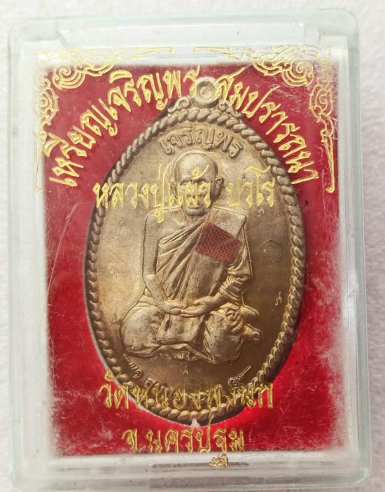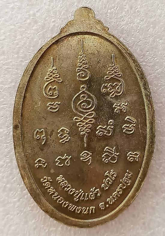 ลป.แผ้ว วัดกำแพงแสน เหรียญเนื้อทองทิพย์ปิดจีวรเจริญพร-สมปรารถนาปี๕๐วัดหนองพงนก