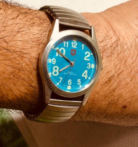 หน้าสีฟ้าอ่อน หลักบอกเวลาใหญ่ ๆ