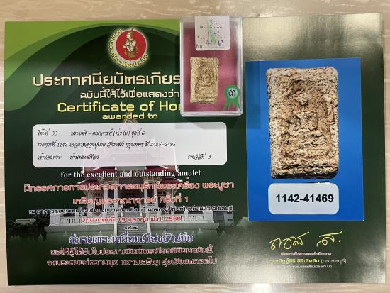 เนื้อจัดแบบสมเด็จวัดระฆัง สร้างปี 2485 สภาพสวย สมบูรณ์ ไม่หักไม่ซ่อม รับประกันพระแท้ ดูง่าย ใบประกาศรางวัลที่3งานสมาคม