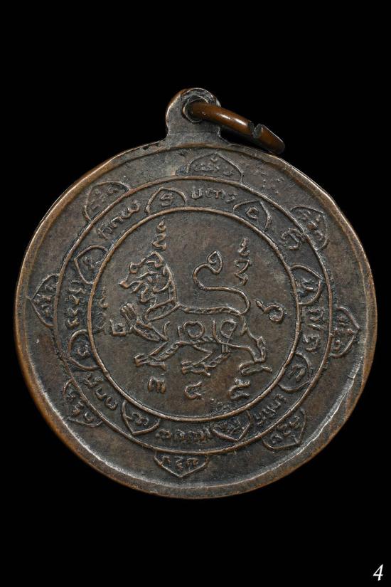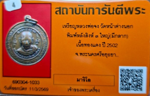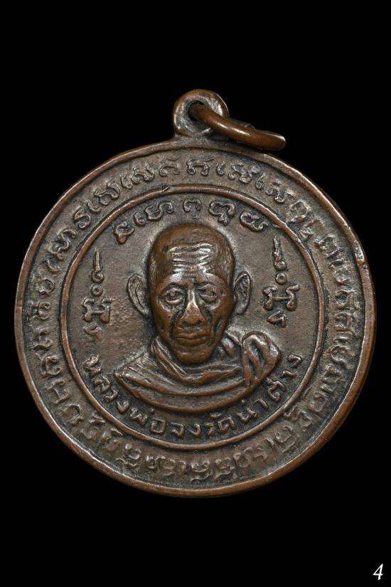 เหรียญกลม หลวงพ่อจง วัดหน้าต่างนอก พิมพ์หลังสิงห์ (๓ ใหญ่ มีกลาก) เนื้อทองแดง ปี 2502