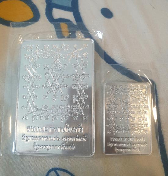 แผ่นยันต์เกราะเพชร รุ่น ๒ เนื้อปีกเครื่องบิน แผ่นใหญ่+แผ่นเล็ก หลวงพ่อเล็ก