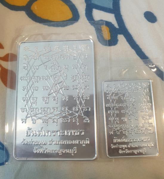 แผ่นยันต์เกราะเพชร รุ่น ๒ เนื้อปีกเครื่องบิน แผ่นใหญ่+แผ่นเล็ก หลวงพ่อเล็ก วัดท่าขนุน |