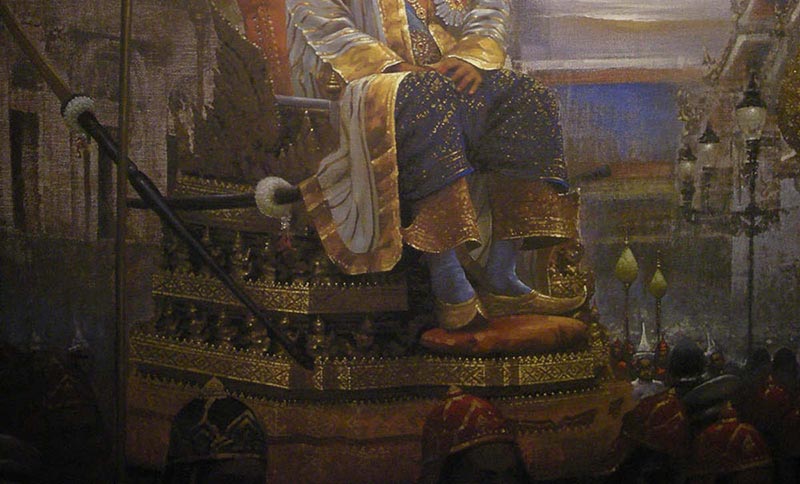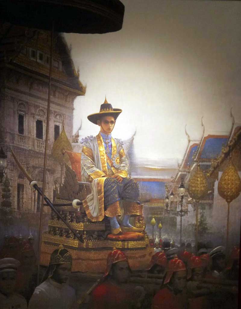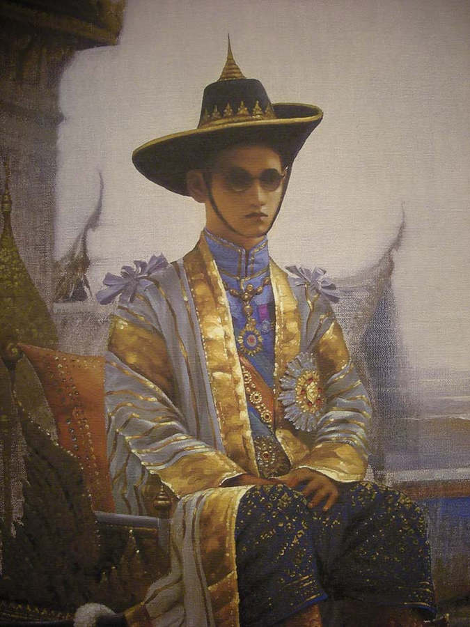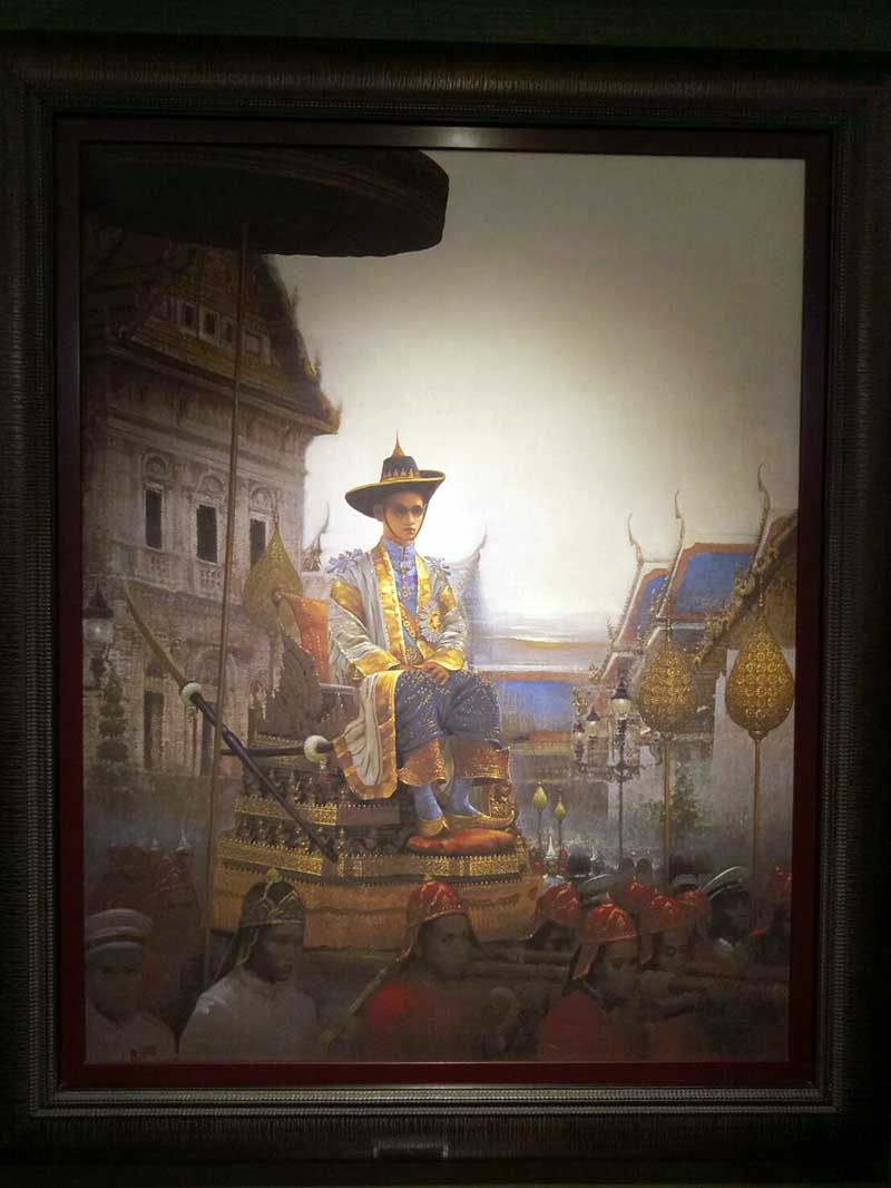 ภาพพิมพ์บนผ้าใบพระบรมสาทิศลักษณ์พระบาทสมเด็จพระปรมินทรมหาภูมิพลอดุลยเดช ในหลวงรัชกาลที่ ๙ ผลงานของอาจารย์เริงศักดิ์ บุณยวาณิชย์กุล