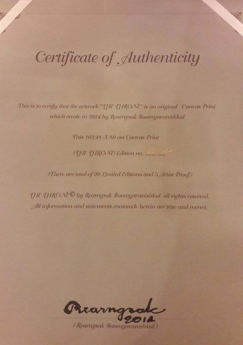 ทุกภาพมีลายเซ็นศิลปิน หมายเลขประจำภาพพร้อมใบรับรองจากศิลปิน