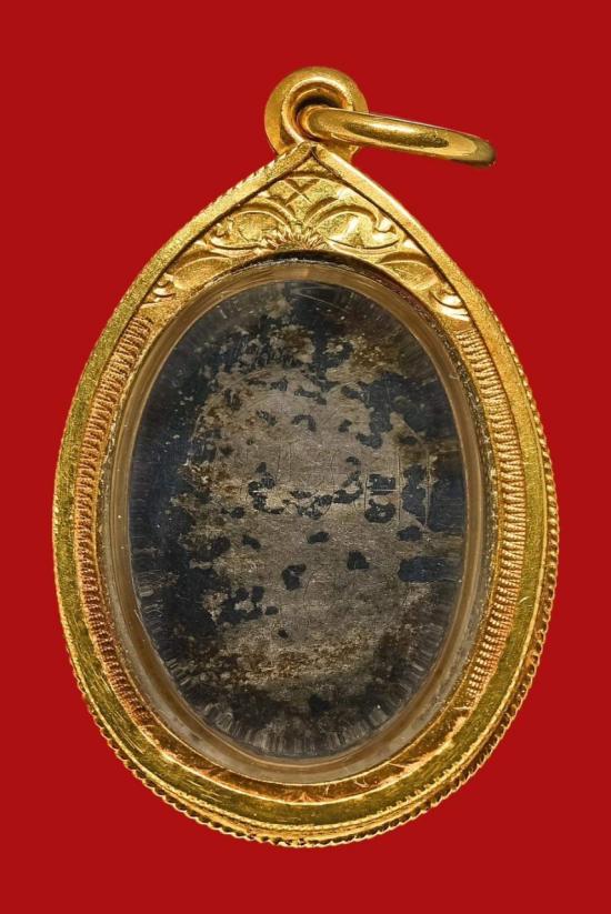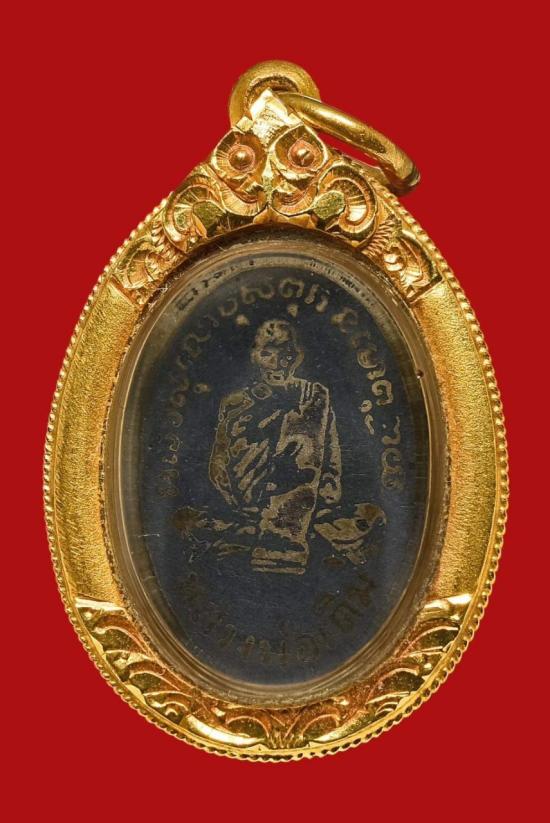 เหรียญรูปไข่เล็ก หลวงพ่อเดิม เนื้อเงินลงถม วัดหนองโพ จ.นครสวรรค์ ปี2485 เลี่ยมทอง 80% พร้อมใช้