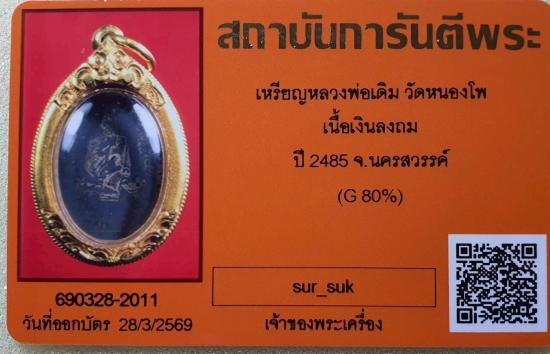 ## บัตรรับรองพระแท้ ออกโดย สถาบันการันตีพระ no. 690328-2011