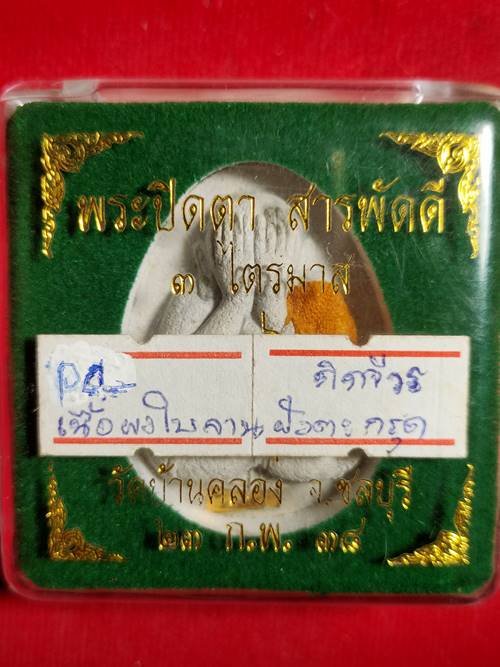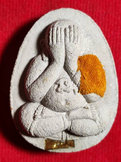 พระปิดตาสารพัดดี 3 ไตรมาส หลวงพ่อคูณ ปริสุทโธ ออกวัดบ้านไคลอง จ.ชลบุรี ปี 2538 เนื้อ ผงใบลานฝังตะกรุดตอดจีวร สภาพสวย เคาะเดียวแดง