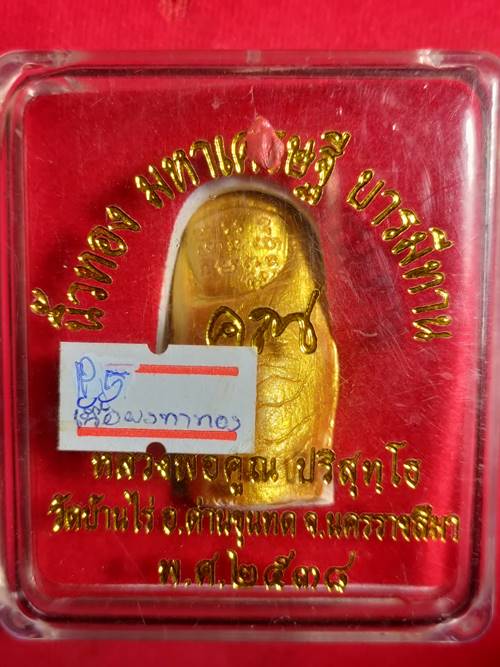 นิ้วทองมหาเศรษฐีบารมีทาน หลวงพ่อคูณ ปริสุทโธ ออกวัดบ้านไร่ ปี 2538 เนื้อ ผงทาทอง สภาพสวย เคาะเดียวแดง