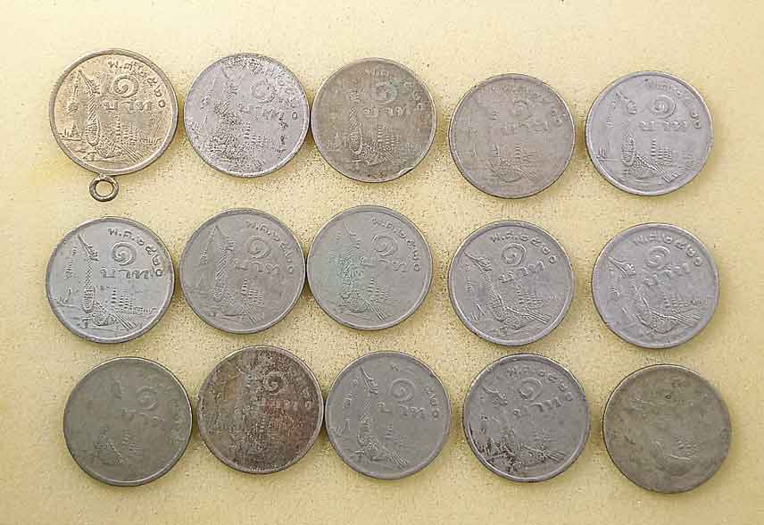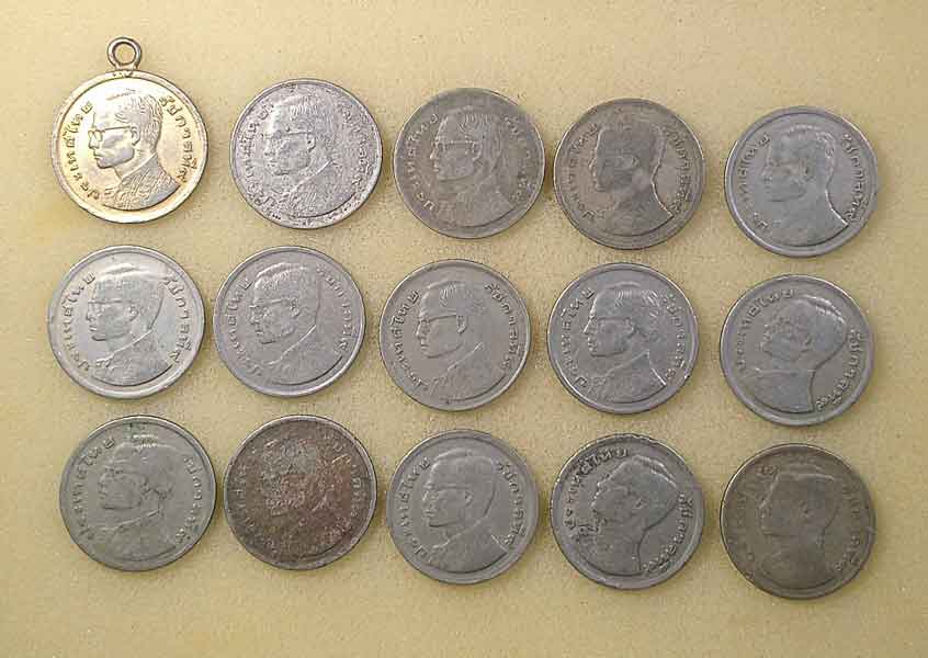 เหรียญ 1บาท ปี2520 15 เหรียญ + เหรียญ 1 บาท ปี2525 7 เหรียญ +เหรียญ 25สตางค์ ปี2500 2 เหรียญ + เหรียญ 50สตางค์ ปี2500 4 เหรียญ