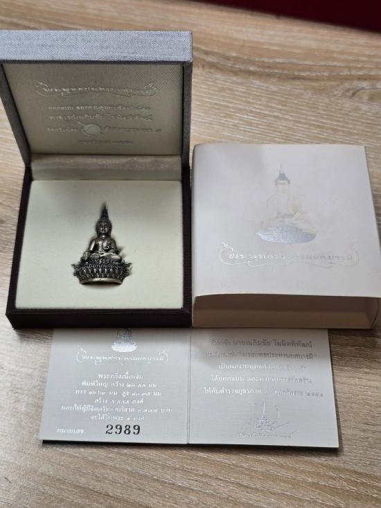 เคาะเดียวแดง พระกริ่งพระพุทธประทานยศบารมี เนื้อเงิน พิมพ์ใหญ่ หมายเลข 2989 เลขสวยๆสภาพองค์พระสวยสมบูรณ์ อุปกรณ์ครบๆคับ |
