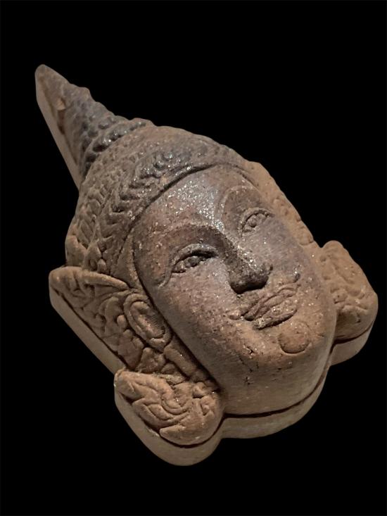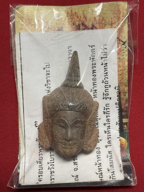 เศียรพระลักษณ์หน้าทอง รุ่นแรก เนื้อผงปถมัง หลวงปู่กาหลง เขี้ยวแก้ว ปี 2549 ด้านหลังฝังตะกรุดเงิน พร้อมซองเดิม |
