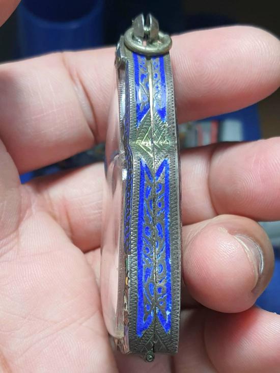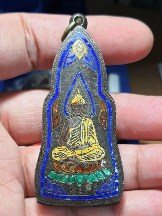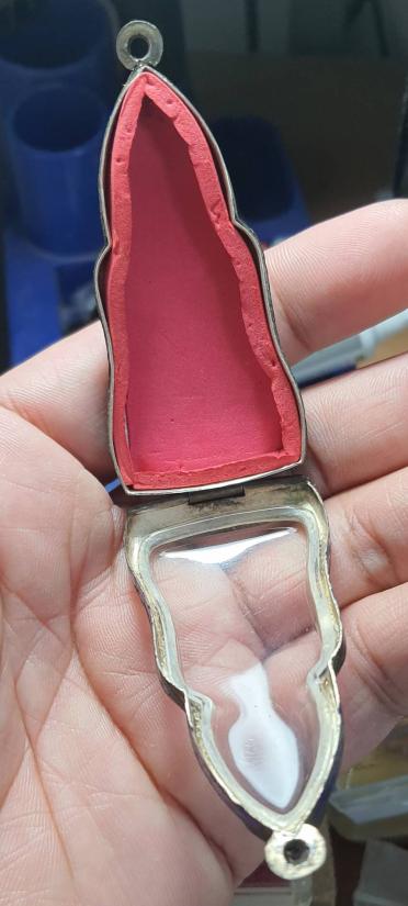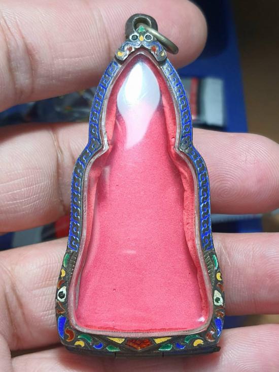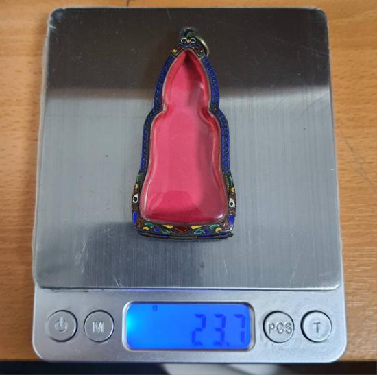 "วัดใจเคาะเดียวพระบ้าน" ตลับเงินพระหูยานลงยา กว้าง 3 สูง 7 ซ.ม. หนัก 23.7 ก.