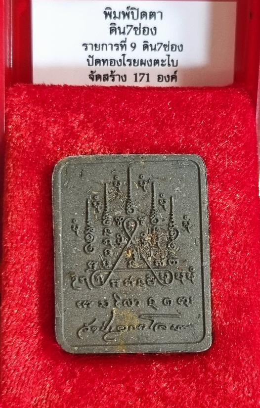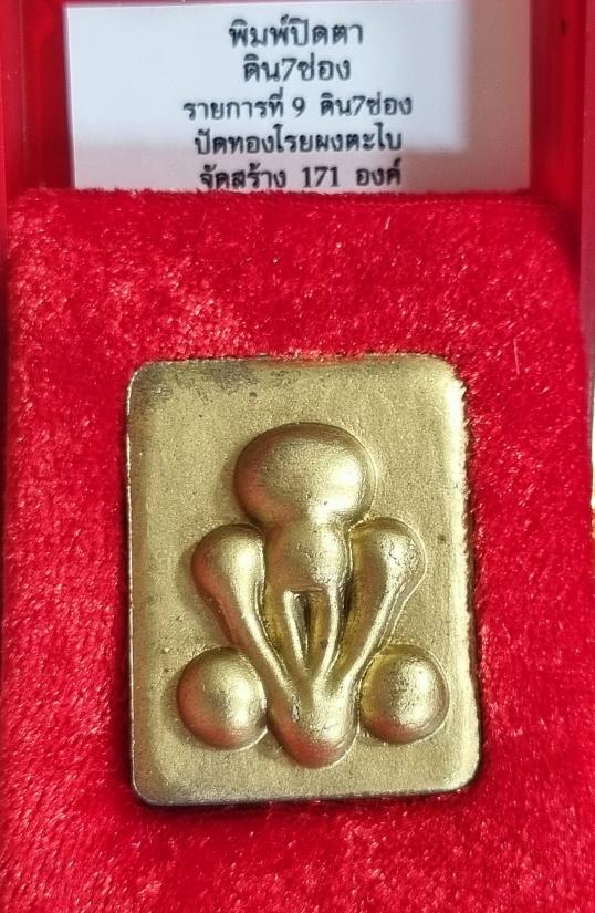 รก.9 เนื้อดิน 7 ช่อง ปัดทองโรยผงตะไบ (เลข 104 เลขสวยๆ "เลขมงคล" หรือ "เลขโสฬส" ที่ส่งพลังด้านความมั่นคง ความมั่งคั่งร่ำรวย และการวางแผนการเงินได้เป็นอย่างดี) พร้อมกล่อง