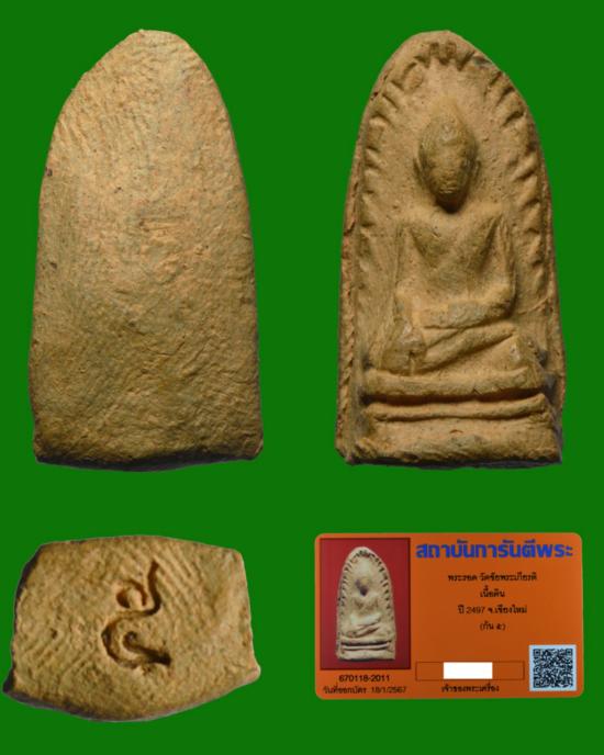 พระรอดวัดชัยพระเกียรติ เนื้อดิน ใต้ฐานจารเลข ๕ เนื้อดิน จ.เชียงใหม่ ปี 2497