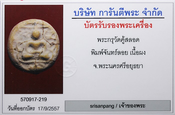 พระกรุวัดคู้สลอด พิมพ์จันทร์ลอย เนื้อผง อยุธยา