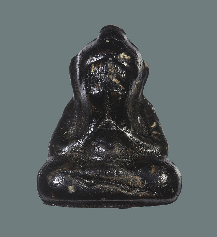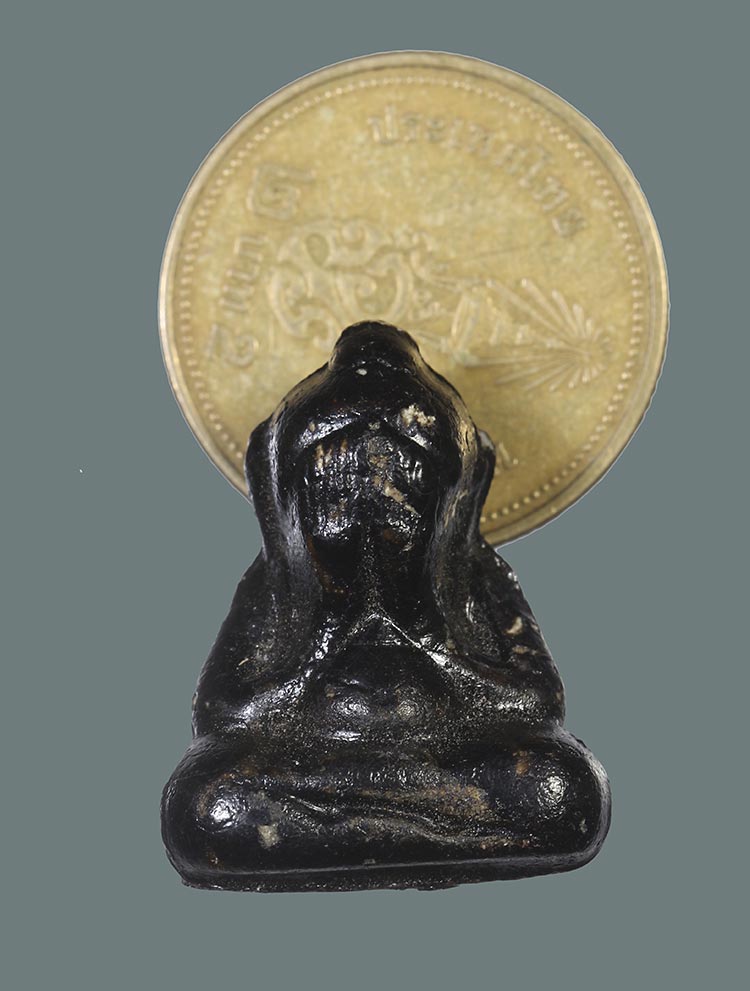 วัดใจ**พระปิดตา เนื้อผงลงรักดำ ก้นฝังตะกรุด ไม่ทราบที่....ตามสภาพครับ |