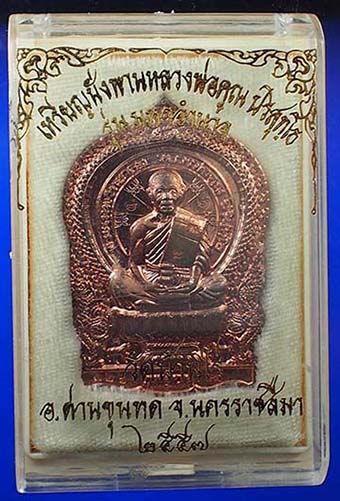 เหรียญนั่งพานหลวงพ่อคูณ รุ่นมหาอำนาจ วัดบ้านไร่ อ.ด่านขุนทด จ.นครราชสีมา ปี 2557 เนื้อนวโลหะ พร้อมกล่องเดิม หมายเลข 326 |