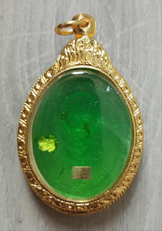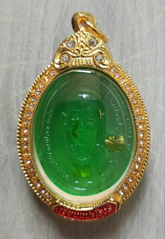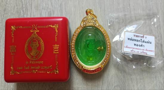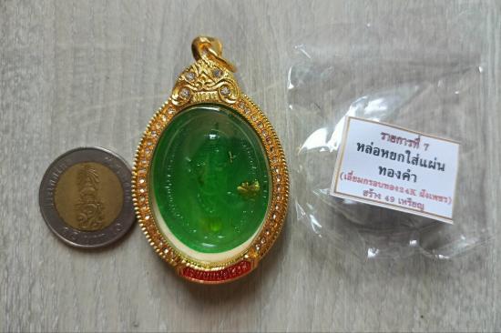 วัดใจเคาะเดียวแดงจ้า เหรียญหยกใส่แผ่นทองคำ แปะโรงสี ออกวัดศาลเจ้า หมายเลข16 พร้อมตลับชุบทองฝังเพชร เคาะเดียวแดงจ้า |
