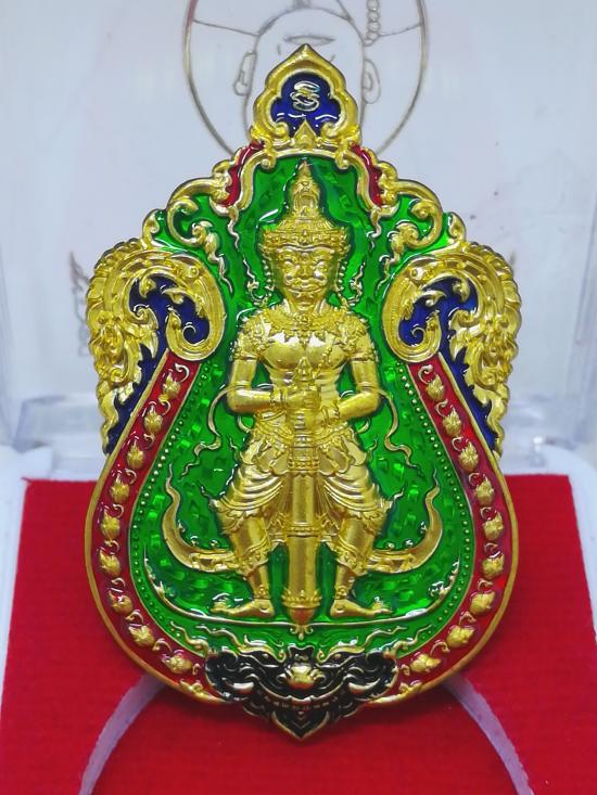 @@ เหรียญ ท้าวเวสสุวรรณ ไพศรพณ์ สยบไพรี หลวงพ่อพัฒน์ ปุญญากาโม วัดห้วยด้วน จ.นครสวรรค์ (ขนาดเหรียญสูง 4.5 ซม.) เนื้อทองทิพย์ ลงยาสีเขียว สร้าง 160 เหรียญ หมายเลข 101 พร้อมกล่องครับ