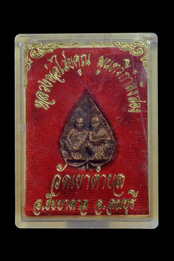เหรียญหล่อใบโพธิ์ หลวงพ่อคูณ วัดบ้านไร่ , หลวงพ่อใส วัดเขาตำบล รุ่น ใสคูณพูนทวี ( เนื้อโลหะผสม ) พ.ศ.2536 ( กล่องเดิม )