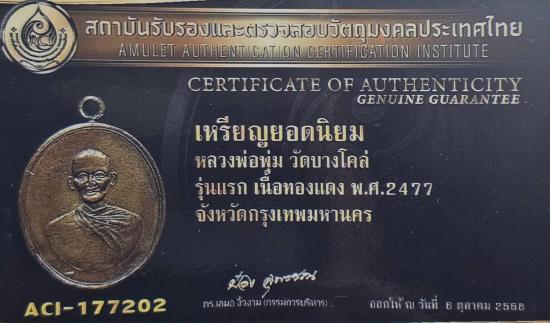 เหรียญยอดนิยมครับ พร้อมบัตรรับรอง 2 สถาบัน สภาพยังสวยครับ