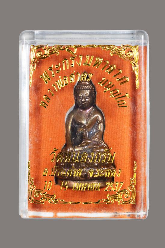 พระกริ่งมหาลาภ หลวงพ่อสาคร วัดหนองกลับ จ ระยอง ปี 2537 เนื้อนวะ (หมายเลข 591) พร้อมกล่องเดิม |