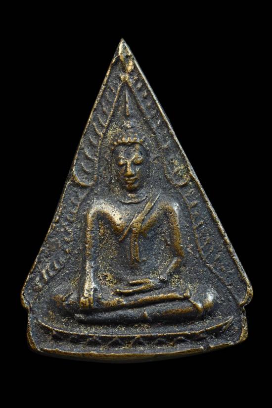 พระหล่อพระพุทธชินราช โลหะผสม เนื้อหาดีโลหะมีอายุ "ฐานกว้าง 2.3 cm สูง 3.2 cm."