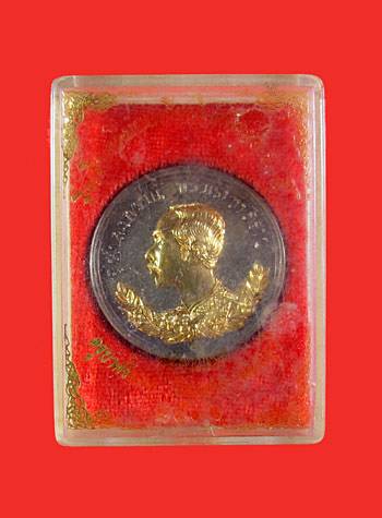 40...!!! เหรียญ"ที่ระลึกเฉลิมพระเกียรติ เสด็จพ่อ ร.5" พุทธาภิเษก ครูบาศรีนวล วัดเพลง จ.นนทบุรี ปี 2536 กะไหล่เงิน ชุบทอง (บางส่วน) สวยๆ กล่องเดิม
