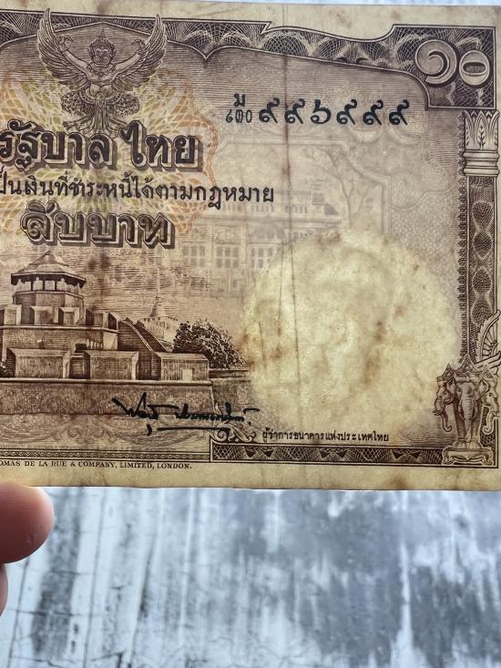 ธนาบัตร 10 บาท โทมัส เลขเกือบตอง สภาพใช้ ( เคลือบพลาสติกใส)