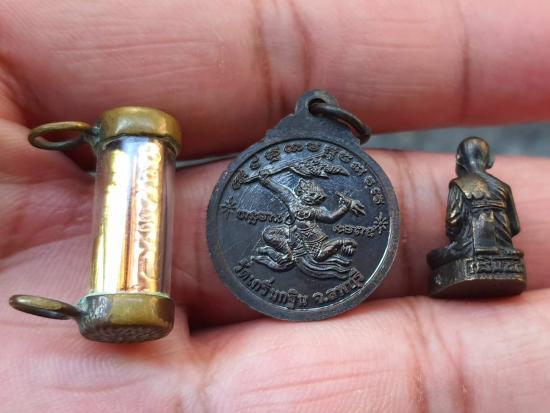 "วัดใจเคาะเดียวพระบ้าน" ตะกรุดสาริกาปั้มสามกษัตริย์+เหรียญหลังหนุมานเชิญธง+รูปหล่อ หลวงพ่อเพี้ยน วัดเกริ่นกฐิน จ.ลพบุรี |