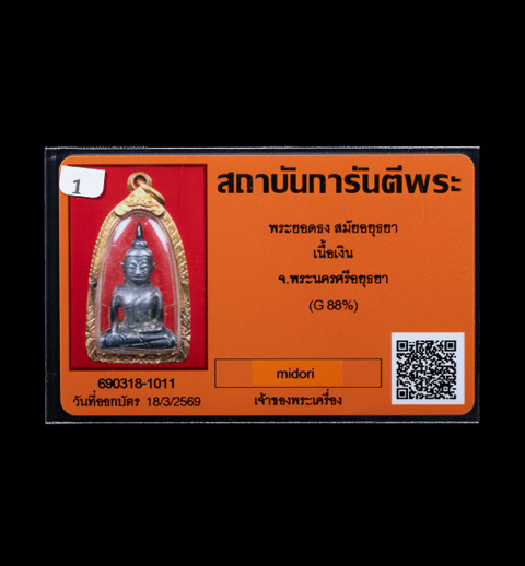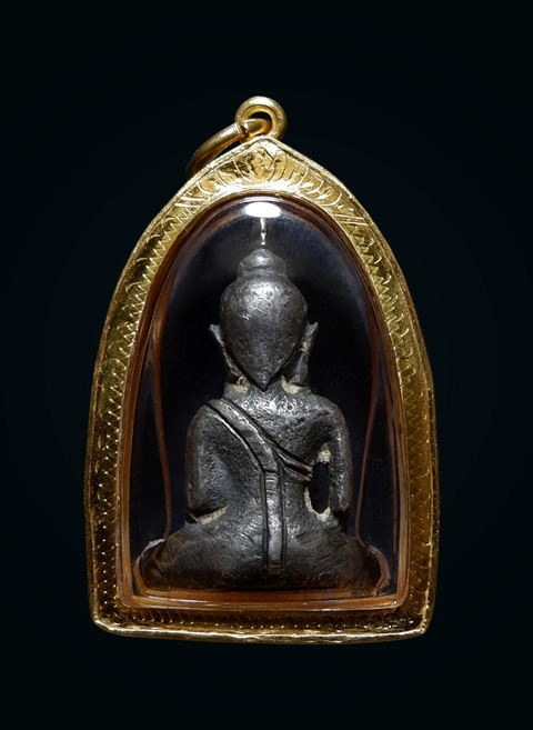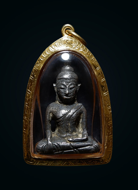 พระยอดธง มารวิชัย อยุธยา สวยๆเดิมๆ เนื้อเงิน! ขนาดห้อยบูชา หายาก! เลี่ยมทองสวยๆ + บัตรรับรอง GPRA