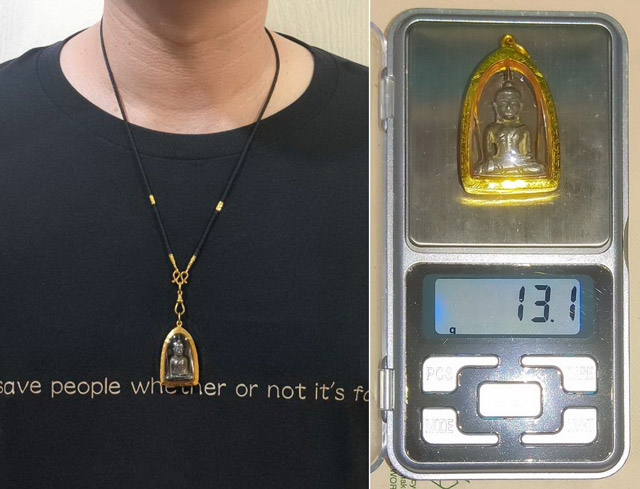 **องค์นี้ เป็นเนื้อเงิน มีขนาดกระทัดรัด ขนาดห้อยบูชา ขึ้นคอพอดี กำลังสวยงาม ไม่ใหญ่เทอะทะ