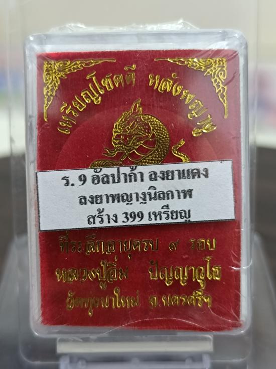 เหรียญโชคดี หลังพญางู วาระ ๙ รอบ หลวงปู่อิ่ม ปญฺญาวุโธ วัดทุ่งนาใหม่ จ.นครศรีธรรมราช (ขนาดเหรียญ 3.0 ซม.) เนื้ออัลปาก้าลงยาแดง ลงยาพญางูนิลกาฬ ซีลเดิม ลุ้นเลขสวย/เลขมงคลครับ (1)