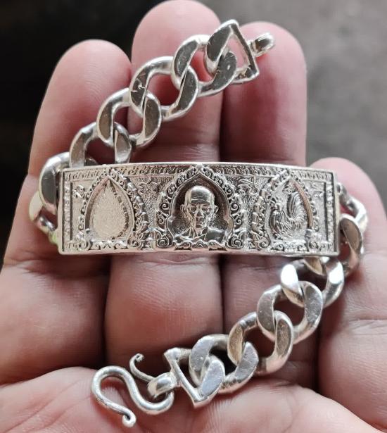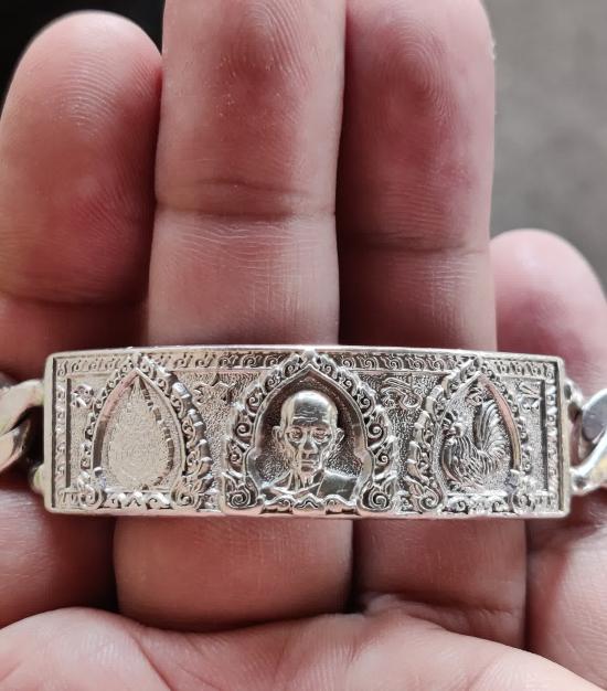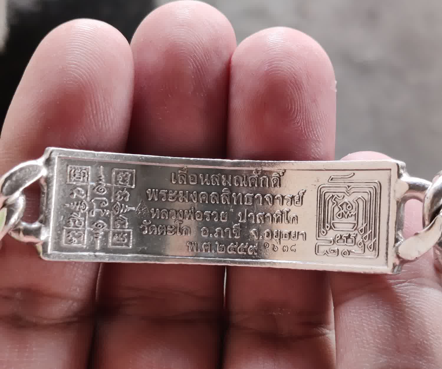 หลวงพ่อรวย วัดตะโก จ.อยุธยา เลสข้อมือ รุ่นเลื่อนสมณศักดิ์ ปี2559เนื้อเงิน ขนาด4 บาท