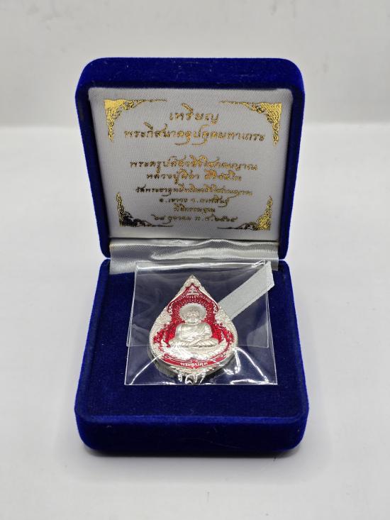 เหรียญ พระกีสนาคอุปคุตมหาเถระ ด้านหลังหลวงปู่ศิลา ปี65 หลวงปู่มหาศิลา หลวงปู่ศิลา สิริจันโท วัดพระธาตุหมื่นหิน จ.กาฬสินธุ์ ออกนามวัดบึงพระลานชัย จ.ร้อยเอ็ด เนื้อเงินลงยาแดง เลข ๑๔๔ มีกล่องเดิม