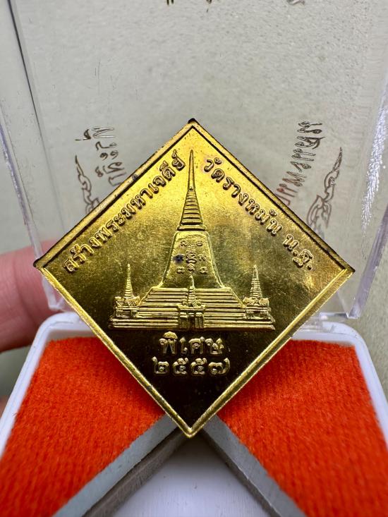 เหรียญข้าวหลามตัดหลวงปู่แผ้ว วัดรางหมัน ปี 57 ครบรอบอายุ 92 ปี เนื้อฝาบาตร สภาพสวยตอกโค๊ตชัดเจน หมายเลข 2445 |