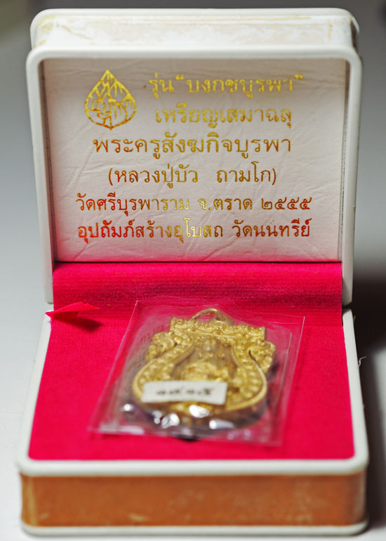 ***เหรียญเสมาบงกชบูรพา หลวงปู่บัว เนื้อทองเหลือง ปี 2555 หลังตะกรุดทองคำแท้ พร้อมกล่องเดิม***