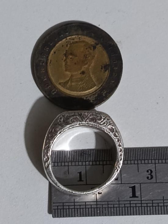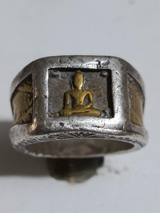 แหวนพระพุทธเลี่ยมเงินเก่า แหวนเนื้อทองเหลืองสั่งทำหุ้มเงินแท้ ขนาดวง 18 มม.สั่งทำตอนนี้ต้องมี 2,000 กว่า